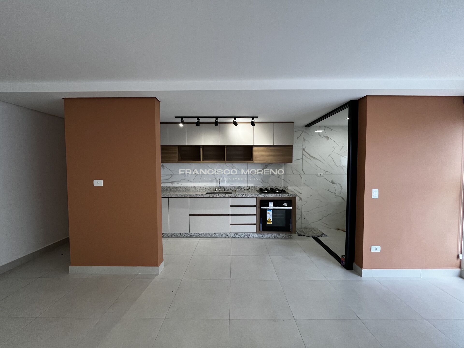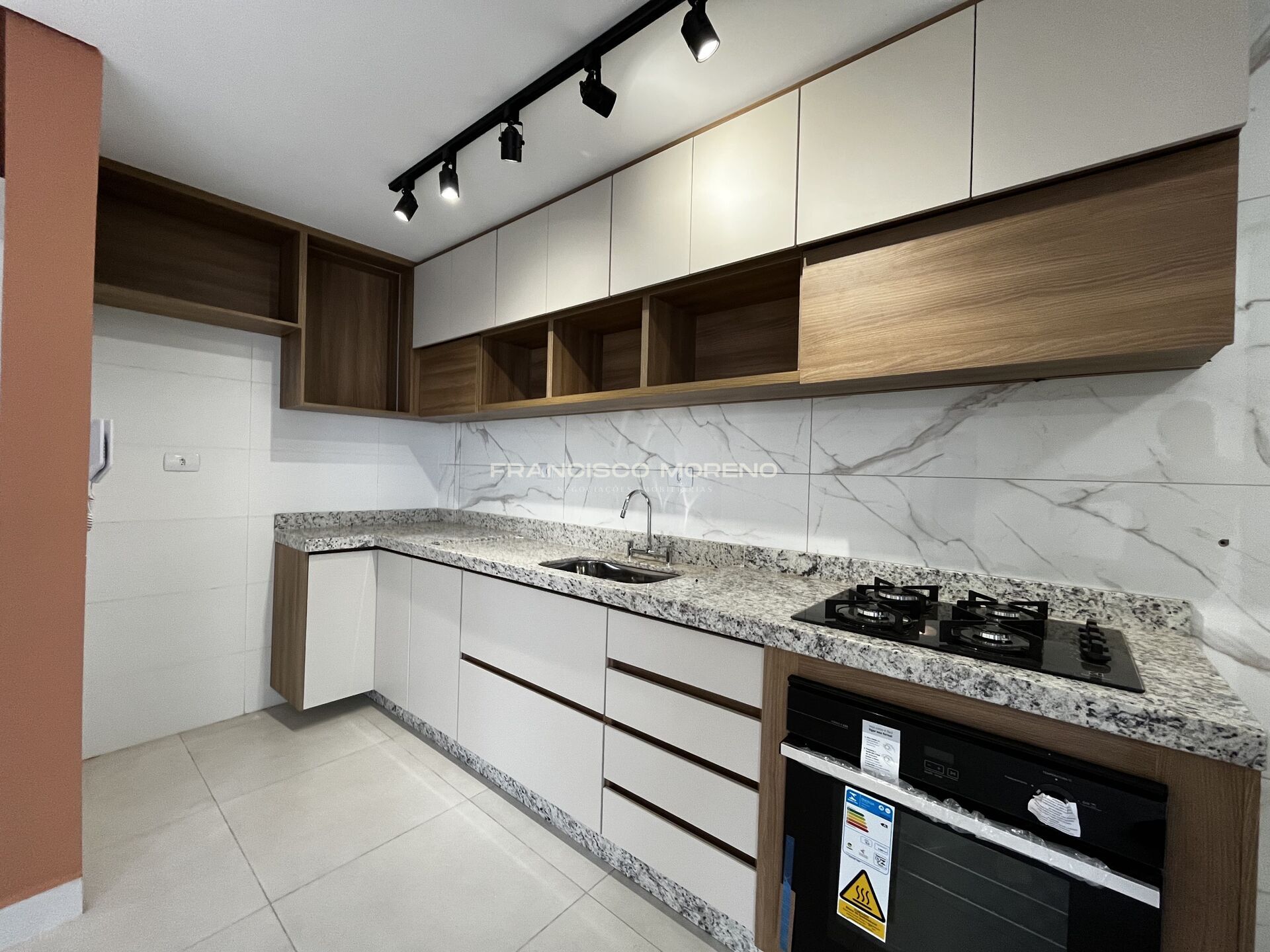 O apartamento conta com sala integrada, proporcionando amplitude e um espaço ideal para receber amigos e familiares. A cozinha possui armários planejados, garantindo organização e funcionalidade no dia a dia, além de área de serviço independente.