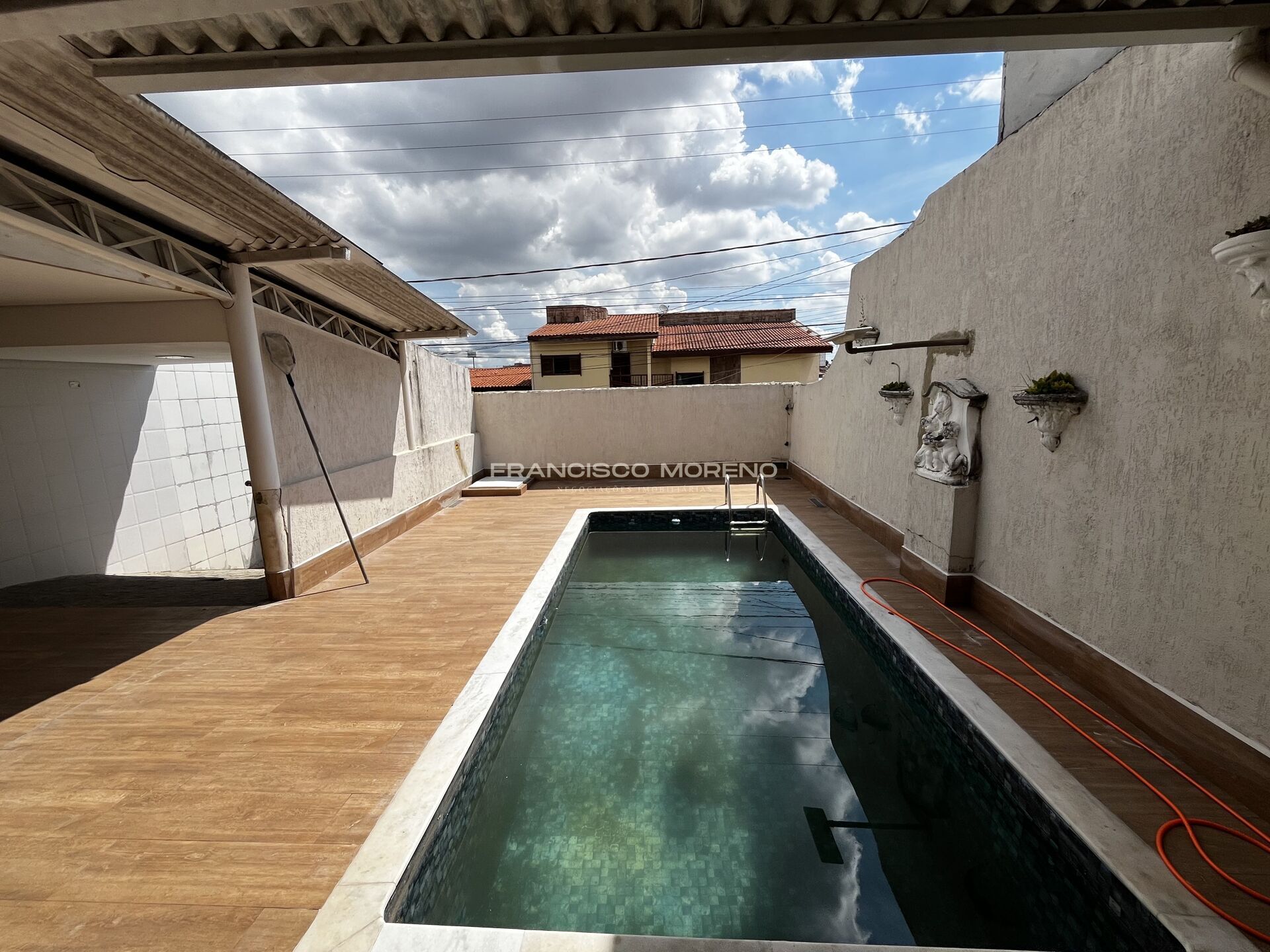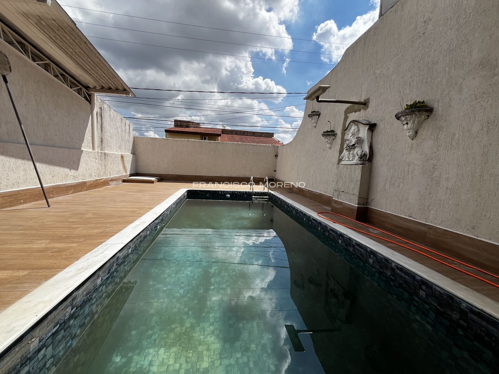 Térreo: garagem, escritório, churrasqueira, piscina e lavabo.